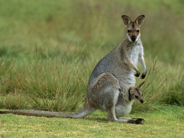 У Эшли и Джона – пары кенгуру Беннета, живущих в Фельдман Экопарк, четыре месяца назад появился малыш. Сразу после рождения он вместе с мамой был помещен в карантинный бокс под наблюдение ветеринаров. Теперь кенгуренок уже немножко окреп и начал показывать мордочку из маминой сумки. Вместе с родителями он сейчас находится в специальном вольере для кенгуру. Понаблюдать за счастливым семейством могут все желающие посетители Фельдман Экопарк.