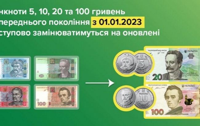 В то же время постепенно в обращении банкнот предыдущего поколения будет все меньше, а их место будут занимать соответствующие "серебристые" монеты номиналом 5 и 10 гривен образца 2018 года и обновленные банкноты номиналом 20 и 100 гривен.