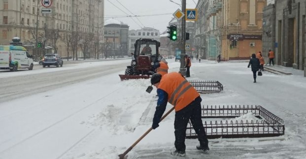 Как сообщили в КП «Дорремстрой», в уборке снега с проезжей части и тротуаров магистралей задействованы 129 работников предприятия.