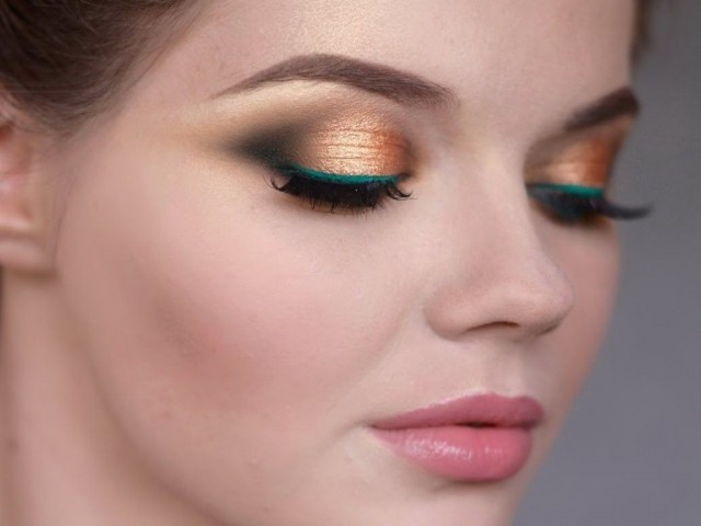 Золотистые оттенки теней прямо-таки созданы для смуглой кожи. Безупречно они смотрятся в тандеме с тоном или пудрой с бронзатором. Зеленым и карим глазам подойдут оттенки медного и темного бронзового, а также светлые золотые тени - золотисто-бежевый и абрикосовый. Для голубоглазых и сероглазых девушек оптимальный вариант - теплые оттенки золотого - песочный, медный и оранжевый.