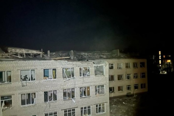 Вчера в 23:57 в городе Балаклея вражеский БПЛА «Шахед» попал в кровлю двухэтажного здания лицея, возник пожар. Второе попадание БПЛА – в другую часть лицея, в результате чего повреждено остекление окон и перекрытие. В результате обстрела также повреждено остекление окон в шести многоквартирных жилых домах, Балаклейский районный центр ПМСП, повреждено остекление окон в здании Центра занятости, Центра детского и юношеского творчества и двух кафе. Также повреждены два легковых автомобиля.