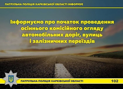 С начала октября харьковские инспекторы отдела безопасности дорожного движения начали проведение осеннего комиссионного осмотра автомобильных дорог общего пользования, как государственного так и местного значения, улиц и железнодорожных переездов. Проверка проводится с целью определения состояния эксплуатационного содержания улично-дорожной сети после окончания летнего сезона и надлежащей подготовки ее к зимнему периоду эксплуатации.