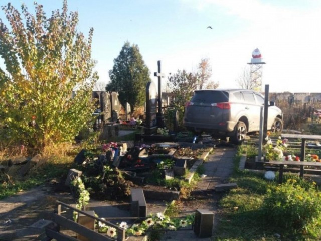 «Установлено, что автомобиль „Тойота“ по неизвестным причинам заехал на территорию 14-го кладбища и повредил 10 памятников», — отметили в полиции.
