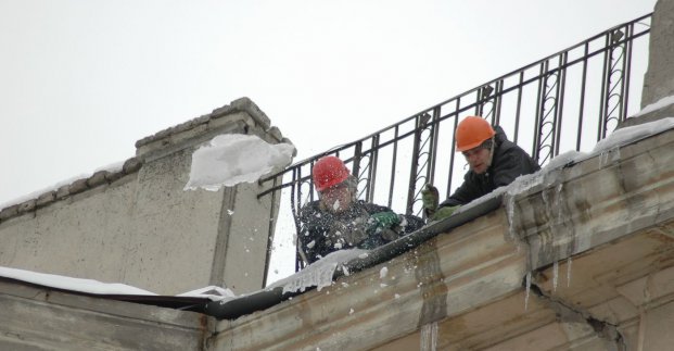 105 альпинистов сегодня, 6 февраля, снимают наледь и сосульки с кровель и конструктивов зданий.