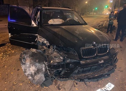 На ул. Большой Панасовской BMW X5 вылетел с дороги и разбился об столб, собрав по пути ветки с деревьев.
