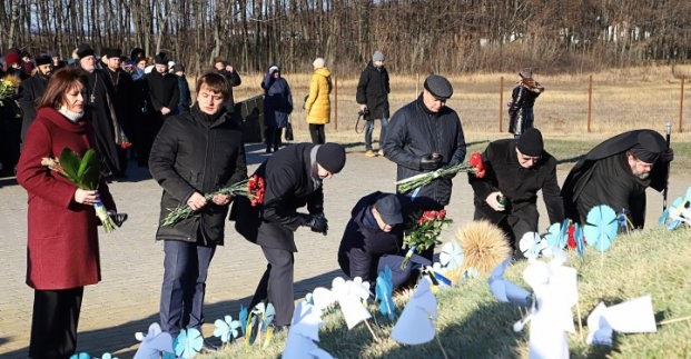 В возложении цветов на Мемориальном комплексе памяти жертв Голодомора приняли участие заместитель Харьковского городского головы Михаил Фатеев, представители руководства Харьковской области, духовенства, руководители предприятий и организаций города, общественность - всего около полутора тысяч человек.