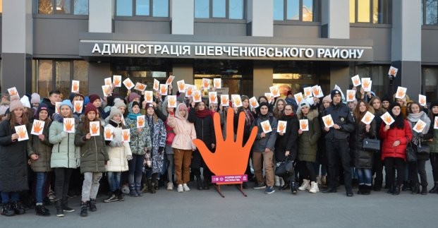 В акции приняли участие студенты, жители города и школьники. Как рассказала председатель ученического самоуправления Шевченковского района Анастасия Сервилова, сейчас проблема насилия очень актуальна среди ее сверстников, поэтому она призвала к участию во флешмобе учащихся разных школ района.