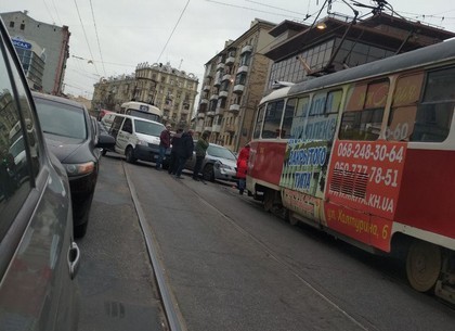 Как сообщают очевидцы, на Московскоми проспекте авария, которая перкрыла, по меньшей мере трамвайные пути.