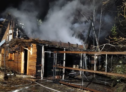 На момент прибытия спасателей площадь пожара составляла 150 кв.м. В деревянной бане горела крыша, перекрытия и внутренние помещения.