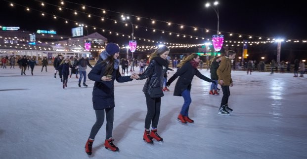 С пятницы по воскресенье и в праздничные дни также до 12:00 можно кататься бесплатно со своими коньками. С 12:00 начинаются сеансы по 100 грн.