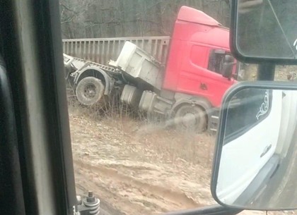 По трассе на Богодухов самосвал улетел в кювет.