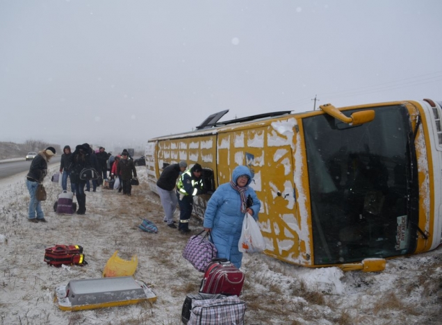 Только за минувшую субботу на дорогах Харькова произошло 28 аварий, но лишь в результате одной из них пострадали люди. А вот в области, несмотря на заверение гаишников, что дороги обработаны песчано-солевой смесью, водители габаритных авто не справлялись с управлением. К примеру, на окружной дороге перевернулся грузовик с кукурузой, которая высыпалась из кузова на проезжую часть. А на 519-м километре автодороги Киев—Харьков—Довжанский около 08:30 43-летний водитель рейсового автобуса Scania также не справился с управлением, в результате чего автобус съехал на обочину и перевернулся на правый бок. В этот момент в салоне находились 52 пассажира, которые ехали из Харькова в Луганск. Как рассказал "Сегодня" начальник отдела профилактической работы облуправления ГАИ Олег Никоненко, 11 пассажиров доставили в больницу. Шестерых из них с переломами, ушибами, закрытыми черепно-мозговыми травмами и сотрясением головного мозга госпитализировали, а остальные пострадавшие после оказания им помощи покинули медучреждение.