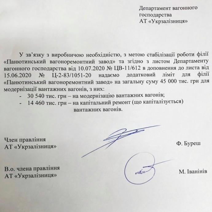 «ПВРЗ выдан дополнительный лимит в размере 45 млн грн для модернизации и капитального ремонта грузовых вагонов. Благодаря этому в ближайшее время предприятие будет загружено работой», - отметил руководитель области.