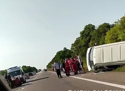 На трассе перевернулся миркроавтобус.
